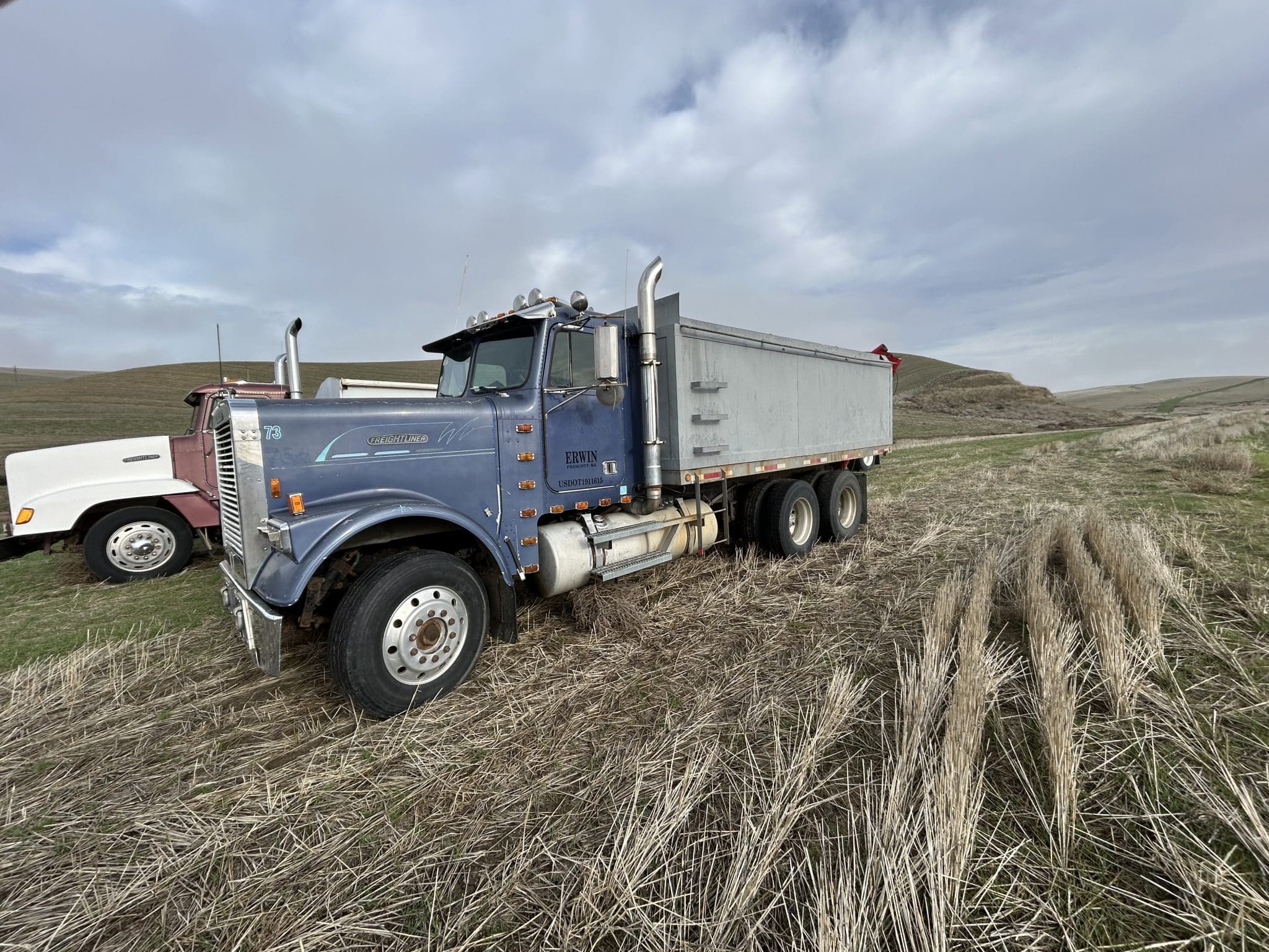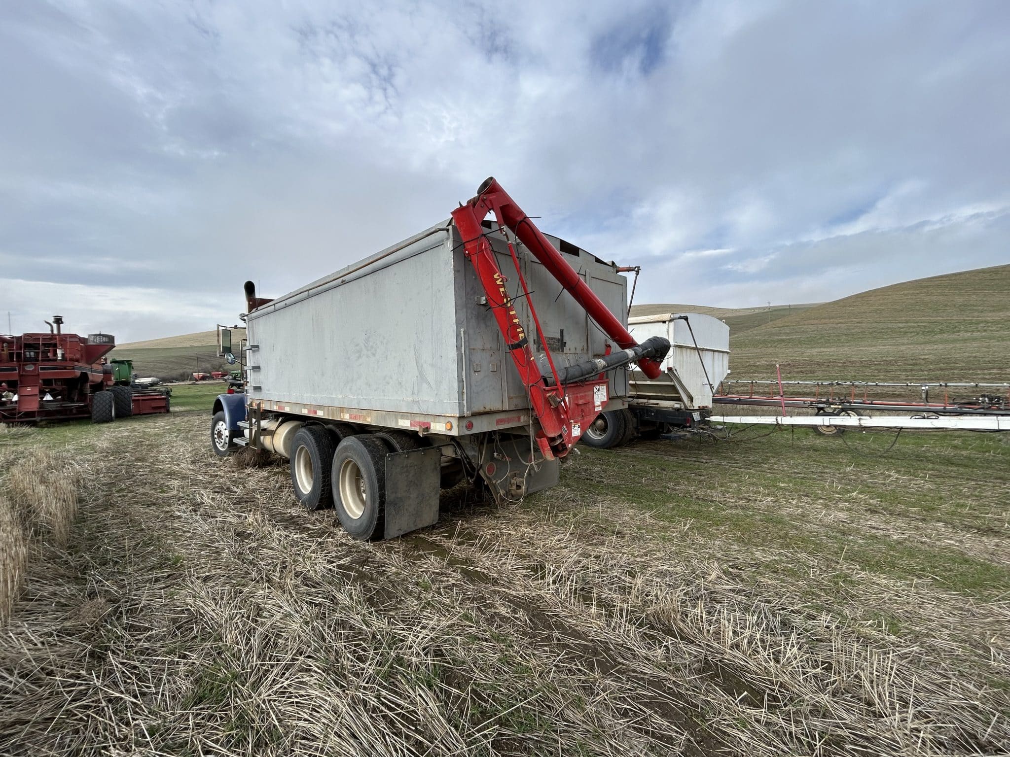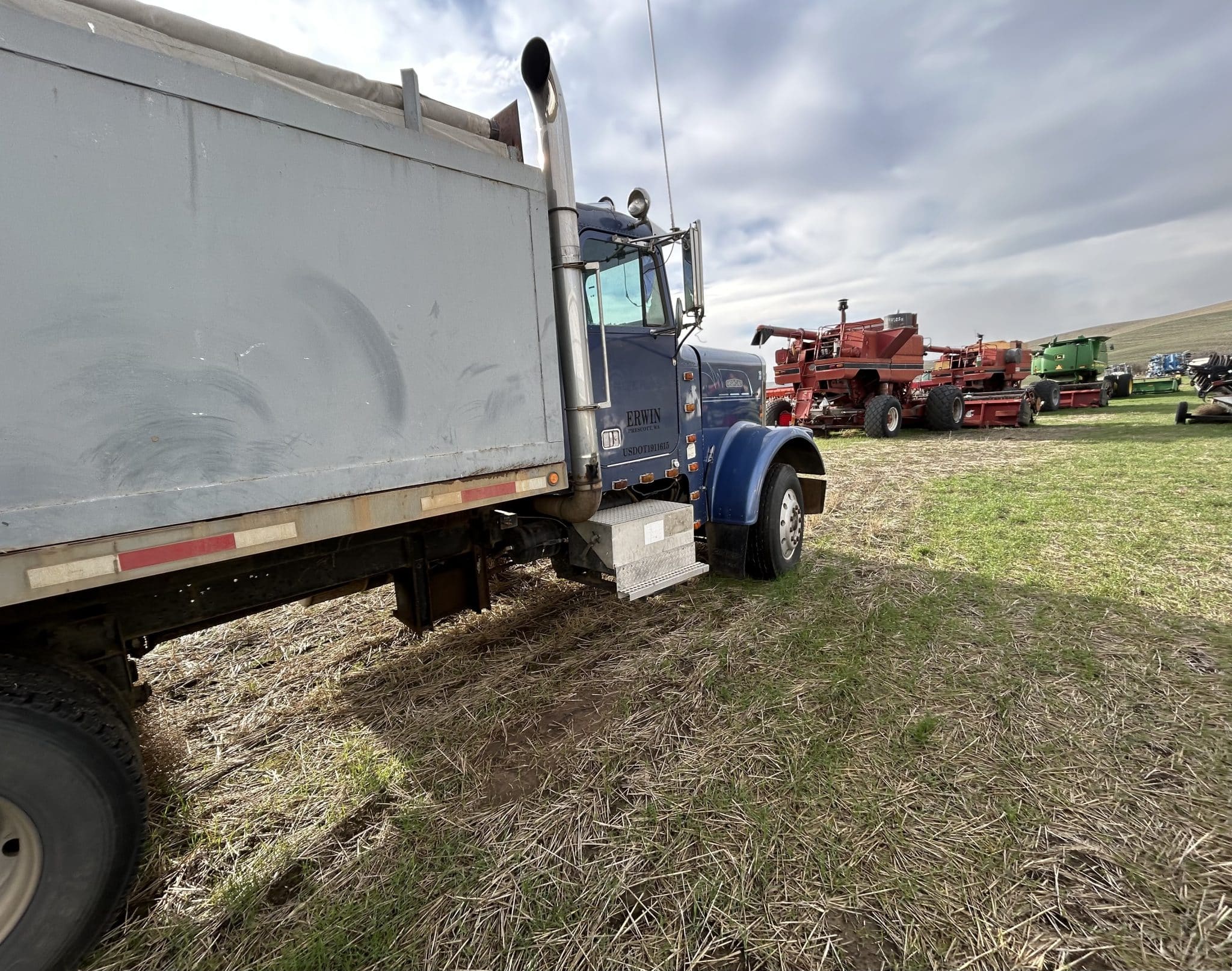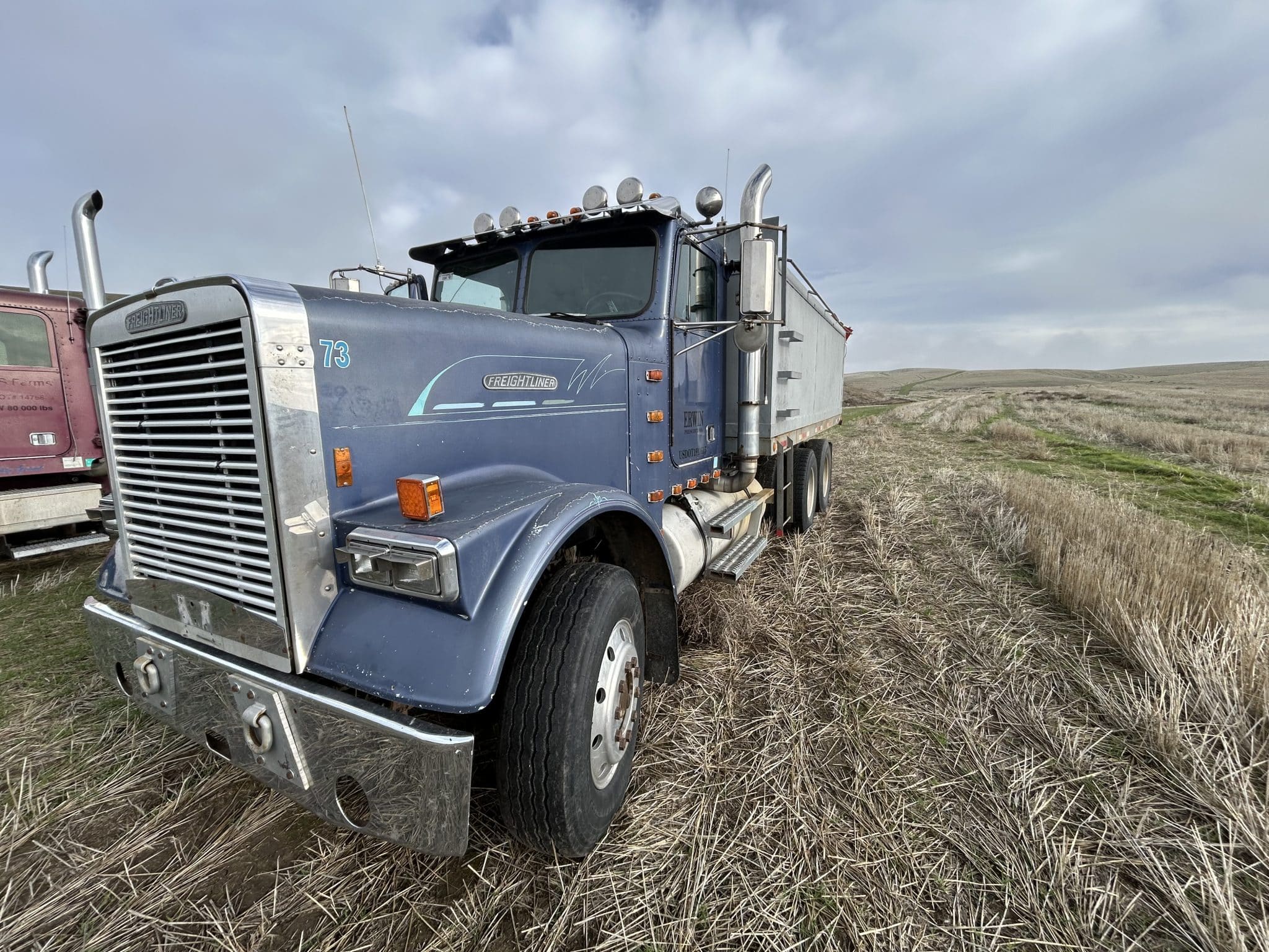1987 Freightliner, 3406B engine, 13 sp, bed, hoist, slip tank, auger.