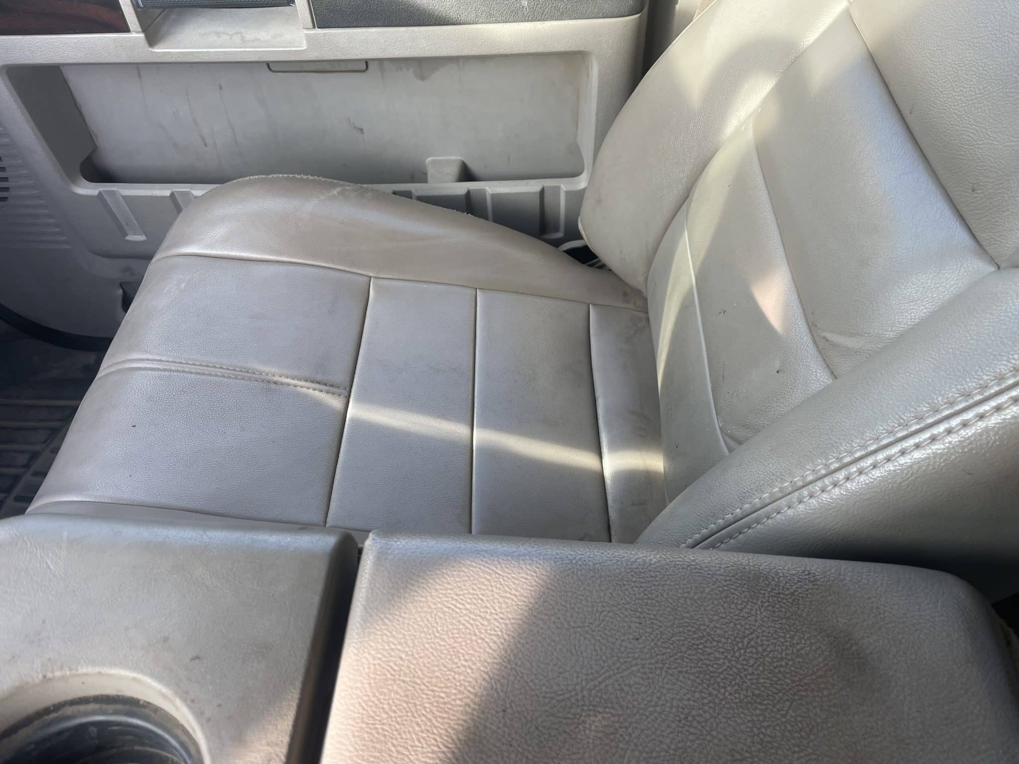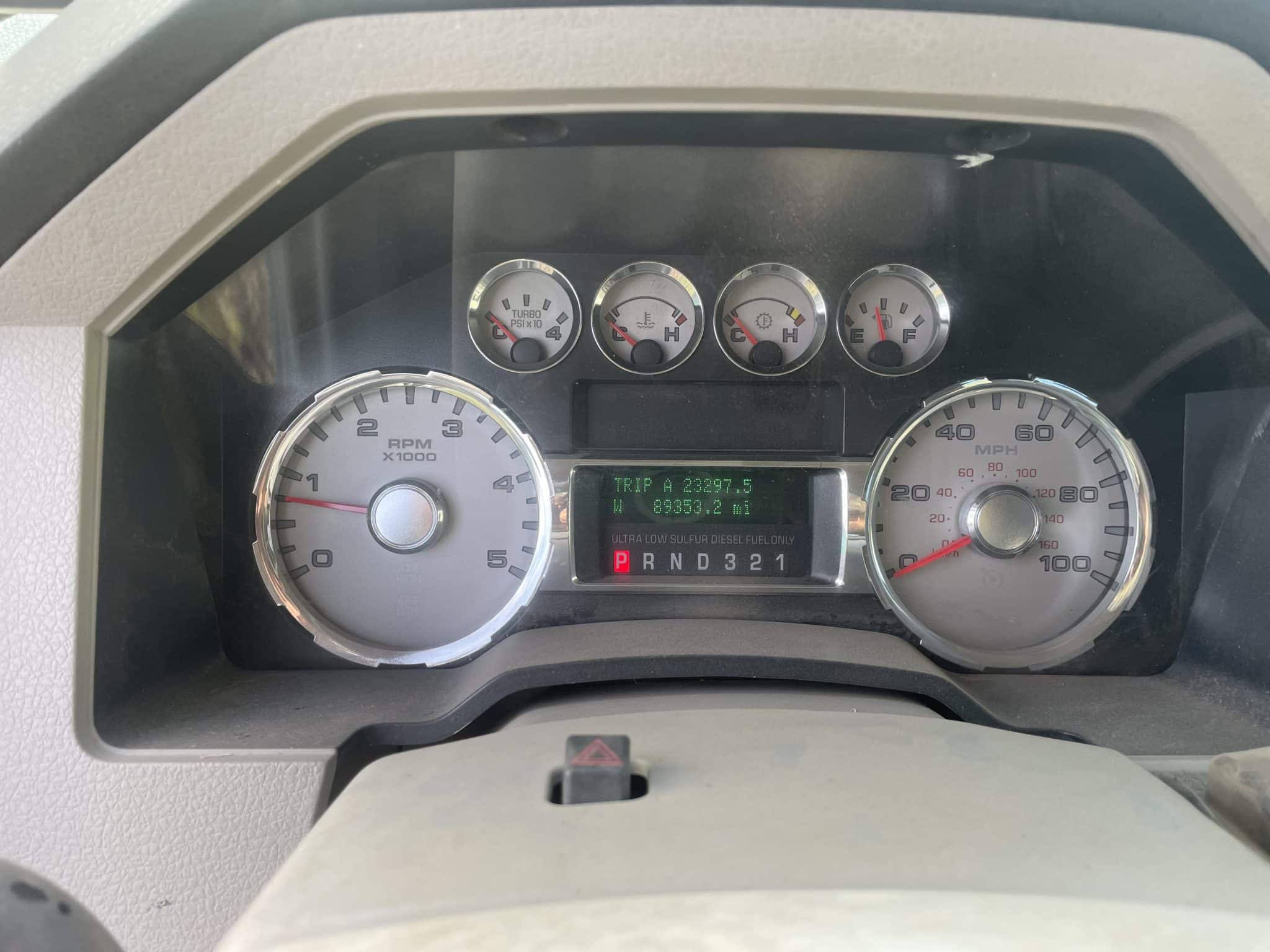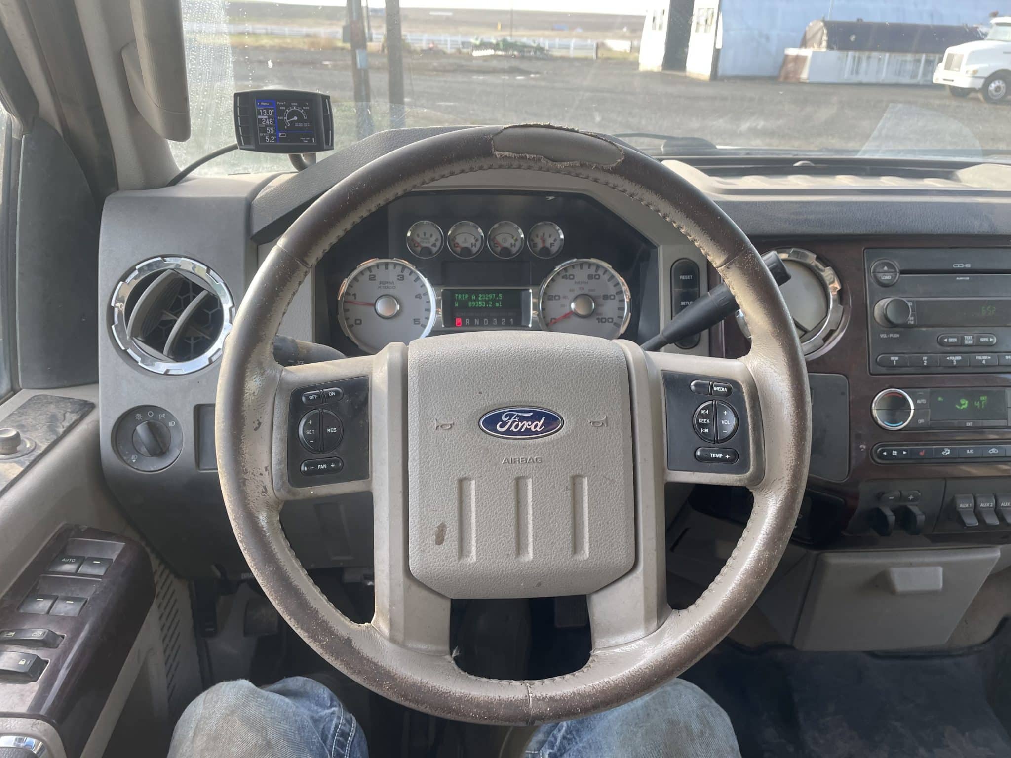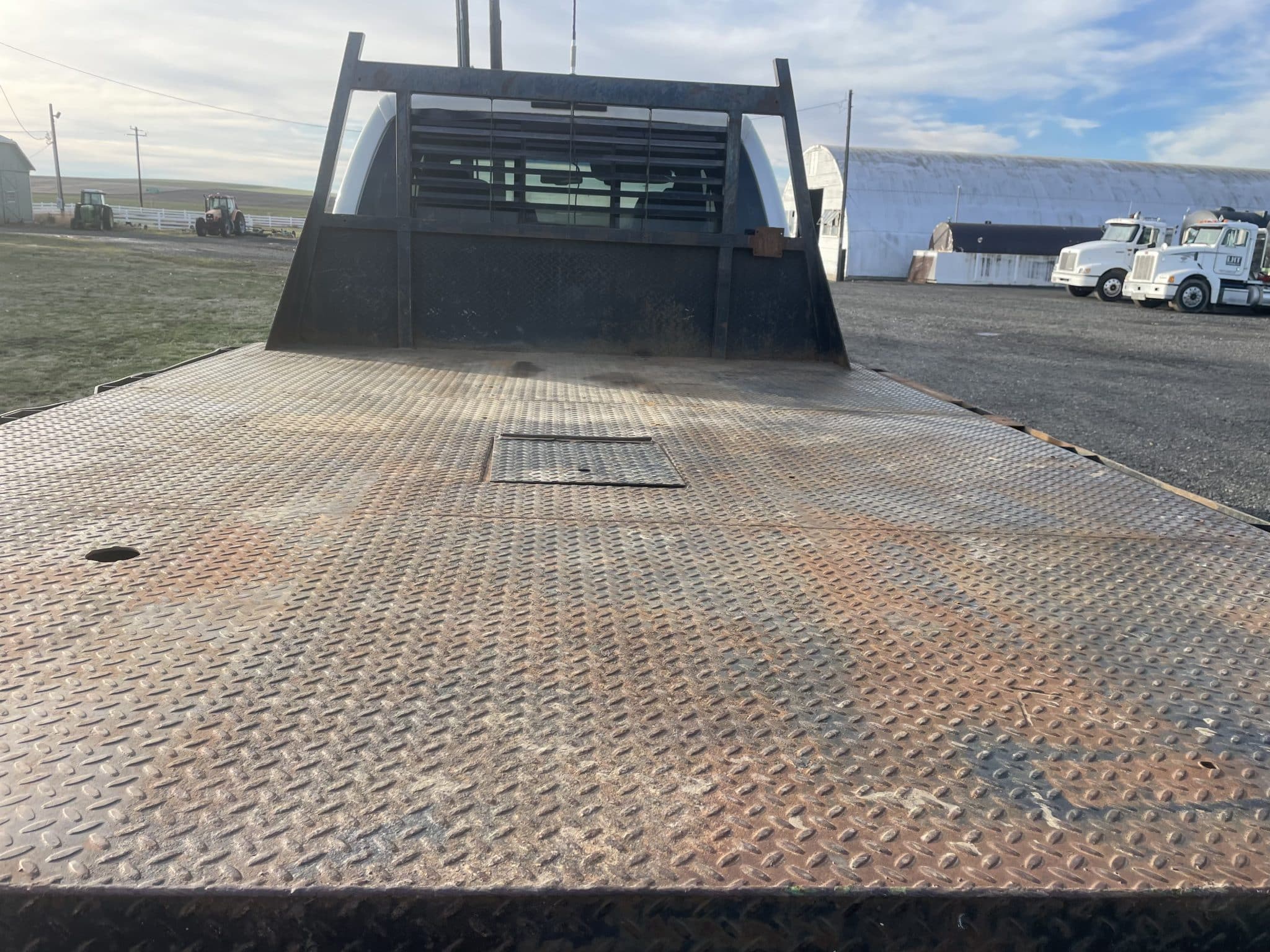 2008 Ford F550, Crew Cab, leather, 6.4L Diesel, 4×4, duals, 89,000 miles, flatbed with boxes and trailer ball hitch, good tires and aluminum wheels.