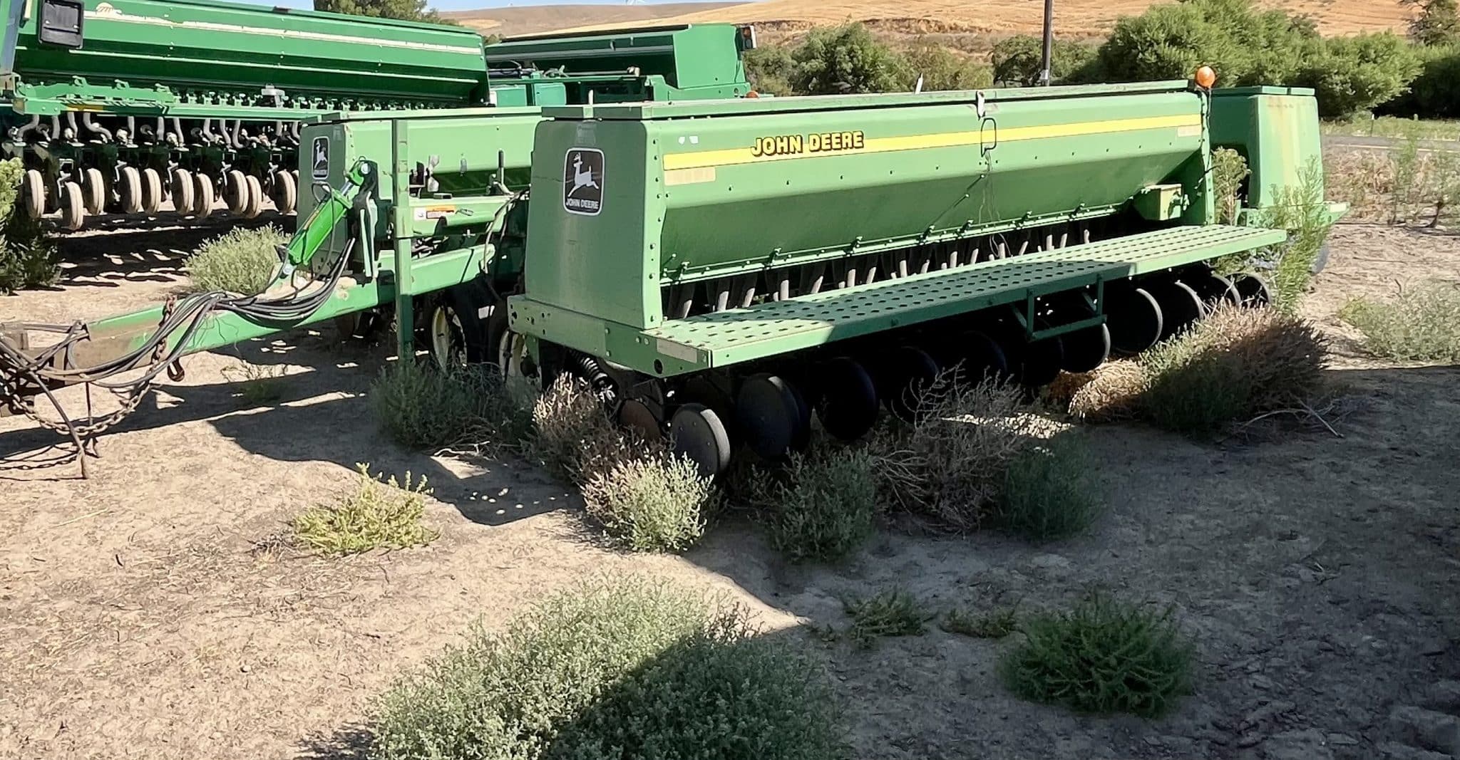 35’ JD 455 drills, 8” spacing, lots of spare parts.